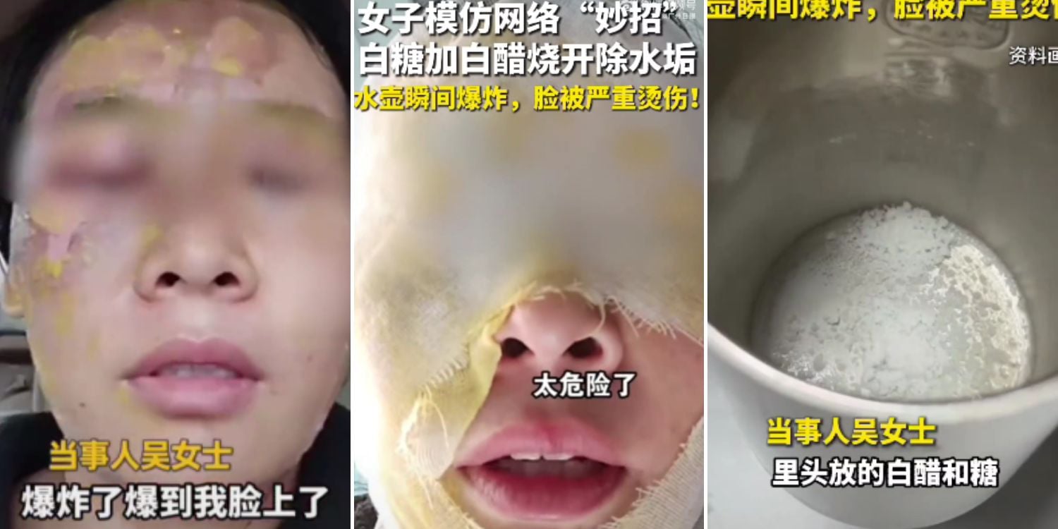 A woman in Handan, Hebei, China, suffered facial burns after trying a viral online life hack to remove limescale from a thermos.