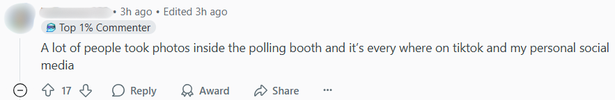 Meanwhile, another user claimed they saw “a lot” of voters taking photos inside polling booths, which they have seen on TikTok and other social media platforms.