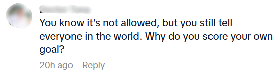 “You know it’s not allowed, but you still told the world,” one user wrote.