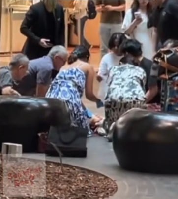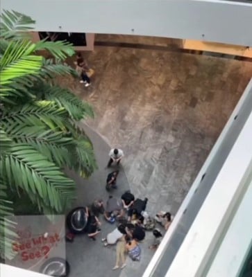 Footage shared by @sgseewhatsee on TikTok showed a group of passers-by surrounding a person lying on the first floor of the mall.