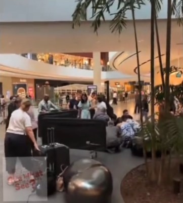 Soon, mall staff started putting up barricades around the scene.