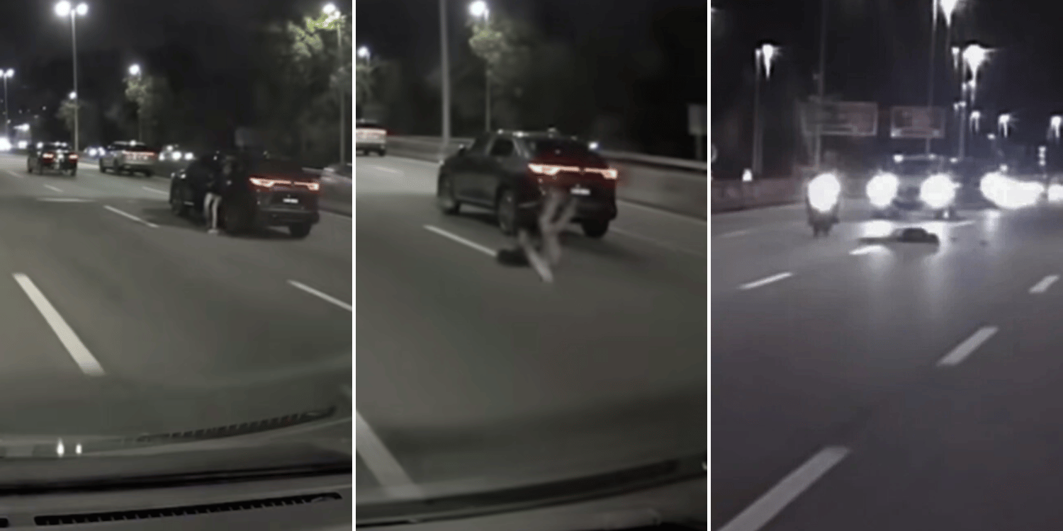 A young woman was seen jumping out of a moving vehicle along the Sprint Expressway near Sri Hartamas in Kuala Lumpur, Malaysia at about 8pm on Sunday (17 Aug).
