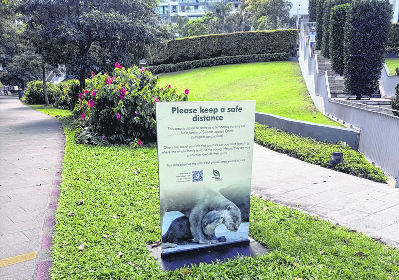 NParks has cordoned off the area where the family of Smooth-coated Otters have been observed with their young, in the interest of public safety.