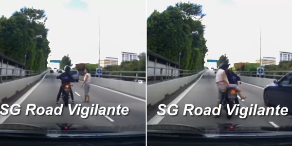 Woman spotted walking in the middle of PIE slip road, motorcyclist stops & offers her a ride
