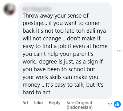 One user added that she could instead find a job to earn money to travel, adding that Bali would still be around in the meantime.