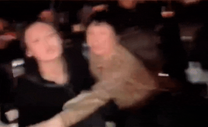 She then grabs another cup of bubble tea from the woman beside her before pouring its contents towards the camerawoman.