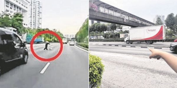 Woman pushing trolley bag spotted crossing AYE on foot, vehicles dodge her