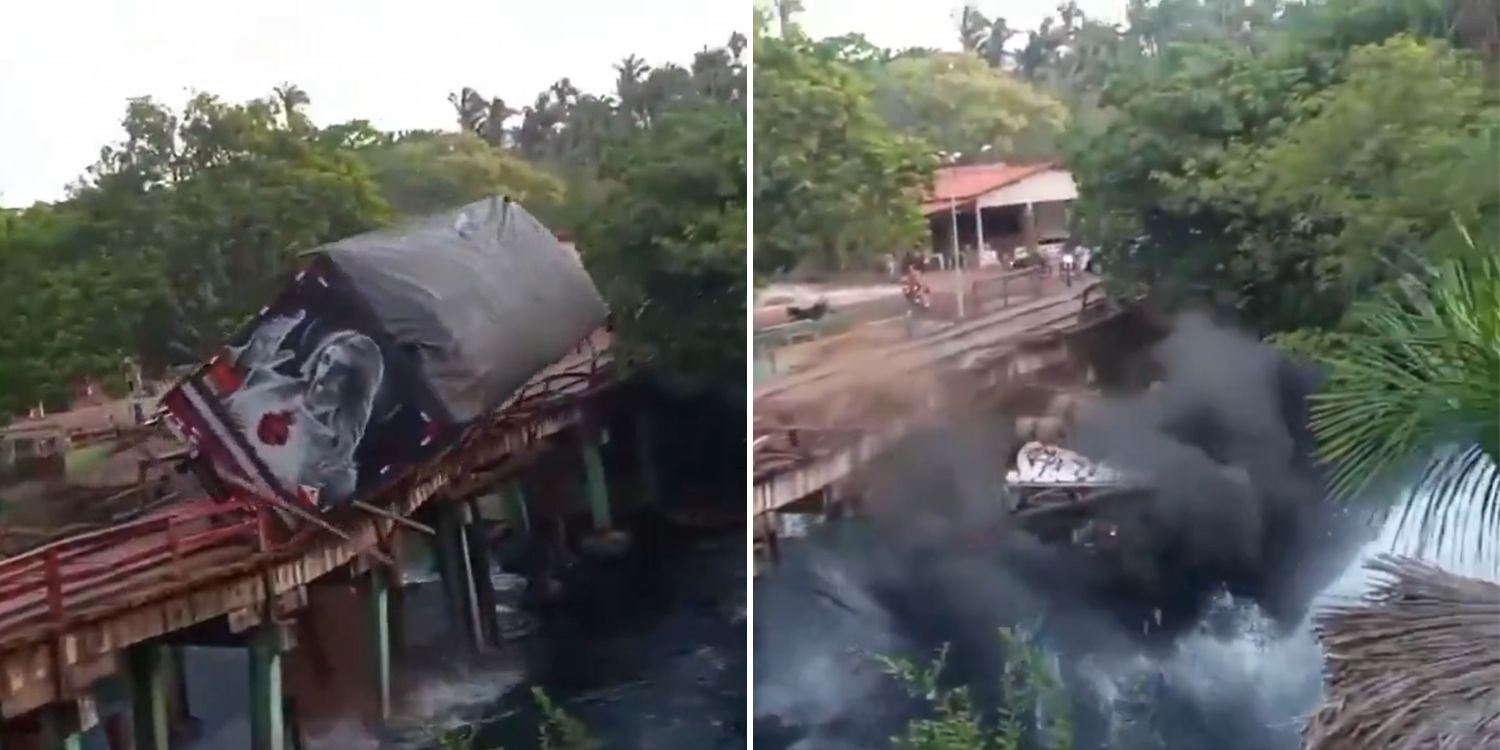 A wooden bridge connecting the towns of Fernando Falcão and Mirador in Maranhão, Brazil, collapsed as a large truck attempted to cross it on 24 Oct.