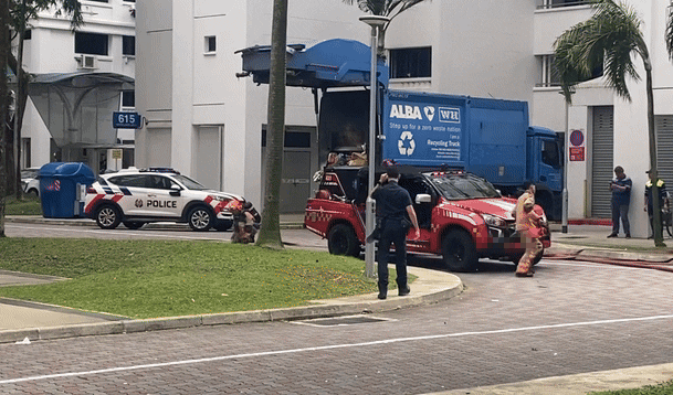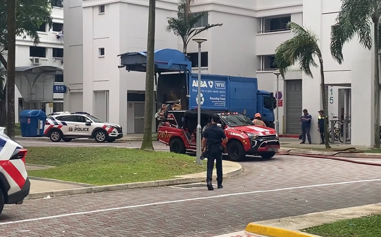Garbage truck’s contents catches fire in Woodlands HDB, police cordon off area