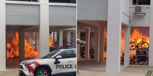 Large pile of garbage catches fire in Woodlands, HDB loading bay engulfed in flames