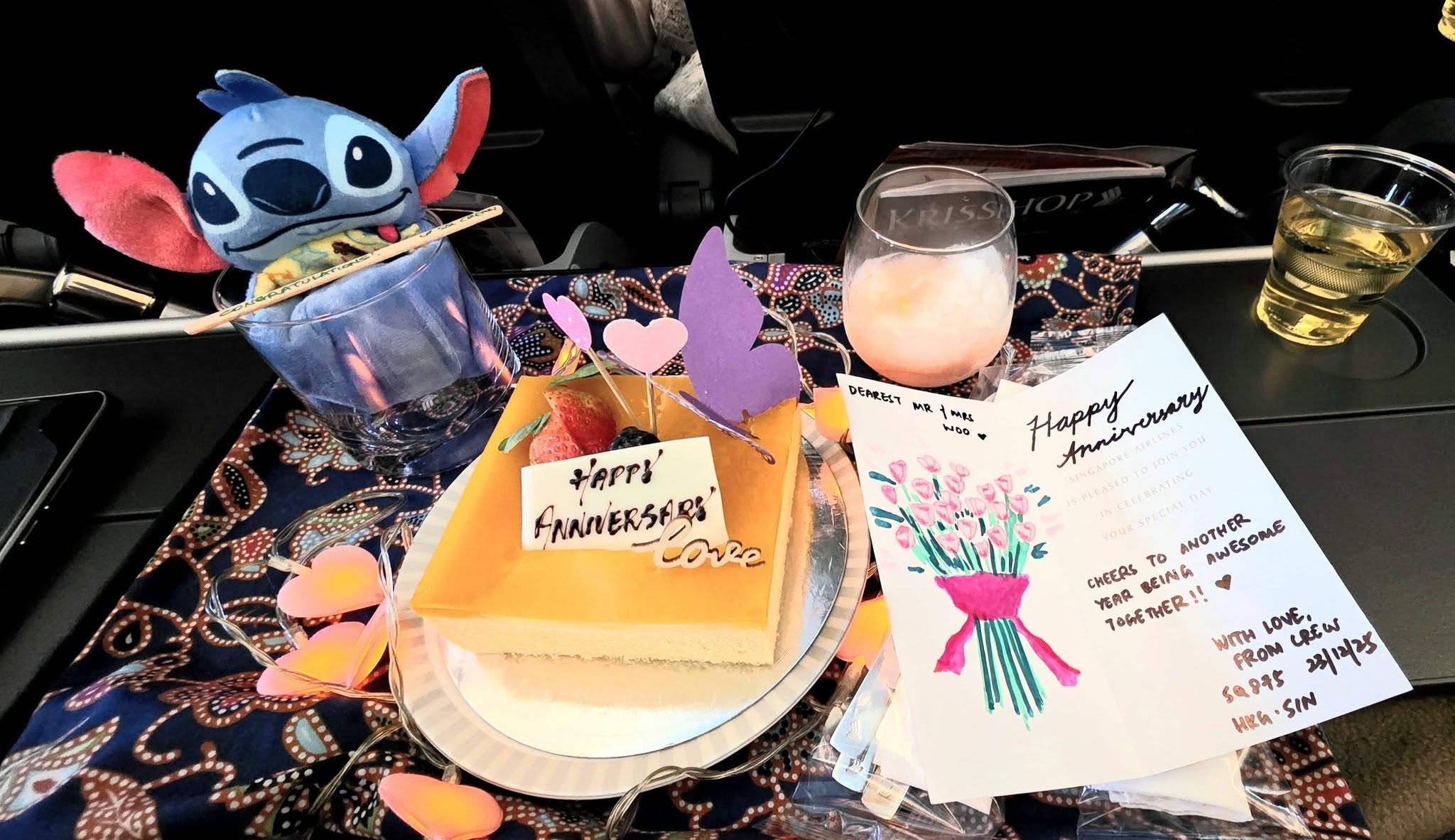 S’pore actor Wu Weiqiang & wife presented with anniversary cake & card during SIA flight