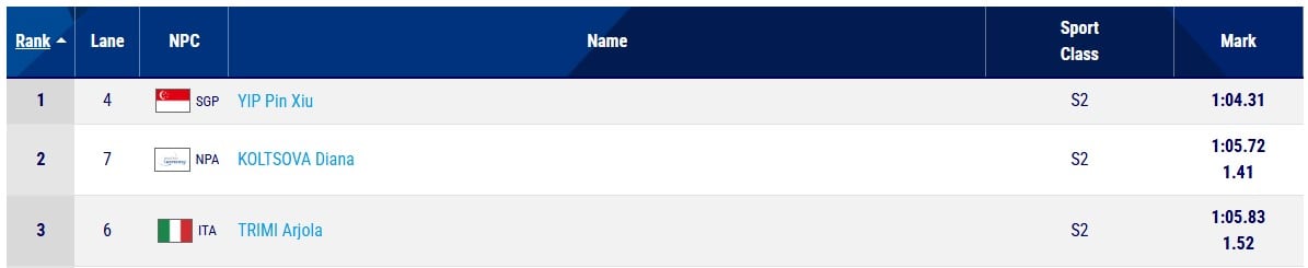 Yip clocked a time of 1:04.31