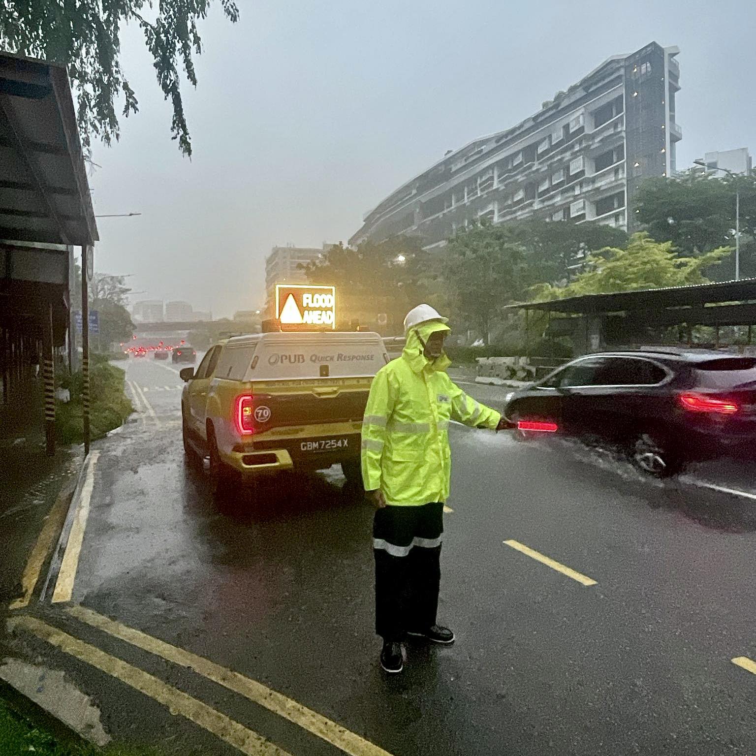 PUB deployed its Quick Response Team to direct traffic away from the floodwaters.