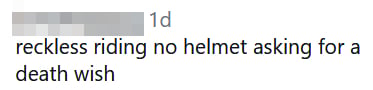 Commenters on both social media posts criticised the youths, with one saying they had a “death wish” for riding without helmets.