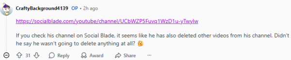 In a pinned comment, he added that he would cite and credit all sources for his videos in future.