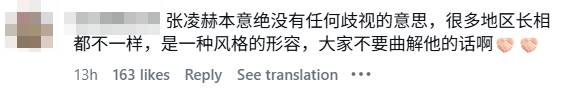 Translation: Zhang Linghe had absolutely no intention of being discriminatory. People from different regions look different, it was just a description of a style. Please don’t misunderstand his words.