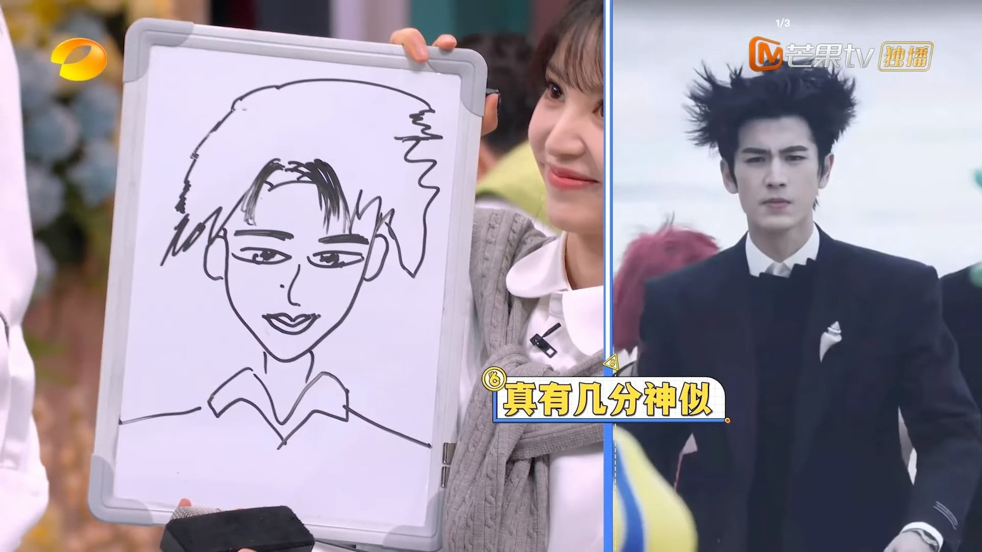During a segment on the show, his co-star Tian Xiwei, who plays the female lead, drew a portrait of him. Zhang initially joked that the sketch resembled comedian Yang Di.